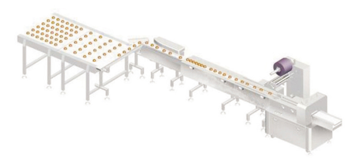 适合于月饼、面包、饼干、米通、蛋黄派、巧克力等食品以及较为规则的非食品类物品的整理、输送、供料、包装。