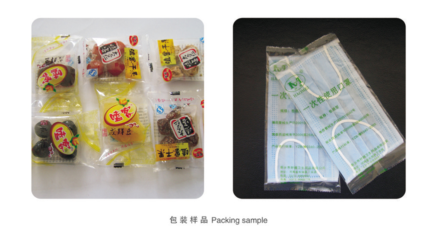 主要适用于包装各类不规则物品、粘性固体物品的包装。例如食品类:果脯,香肠,鱿鱼,蛋糕,蛋卷、速食面、果冻、软糖等;其他类:毛巾,湿巾,套装牙膏牙刷等酒 店用品、胶带、五金件,袖珍记事本、药品等